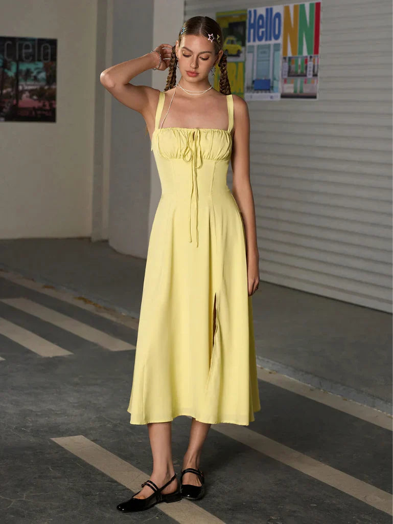 Catch everyone's eye with the Rush Bust Split Thigh Cami Dress! Boasting a fun thigh-high slit and smooth straps, this dress radiates playful energy and self-assured style. Ideal for dancing all night or making a striking entrance, it embraces your curves perfectly while keeping the vibe lighthearted yet sophisticated. It is flattering and suitable for any occasion!
